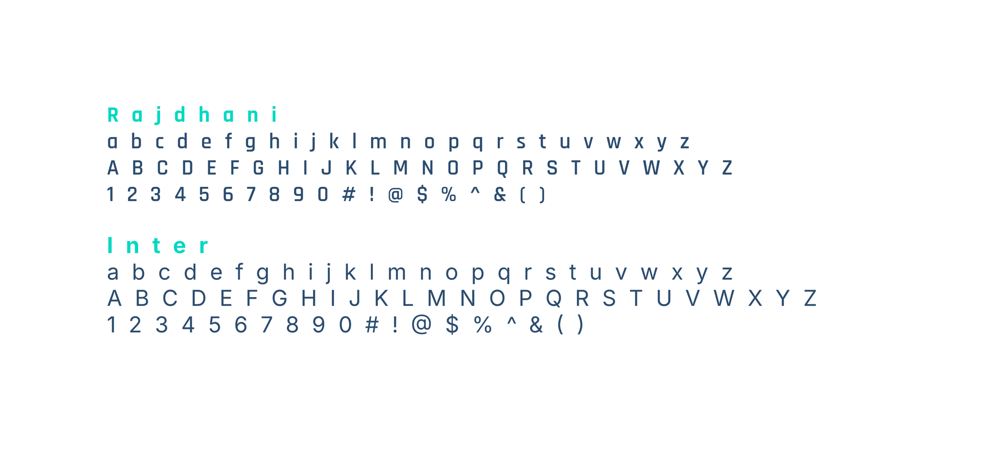 Headers: Rajdhani — a sleek geometric sans-serif that echoes infrastructure and precision. Clean lines. Modern proportions. Unmistakably tech-forward.